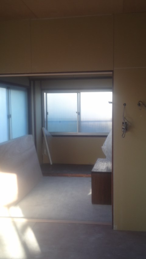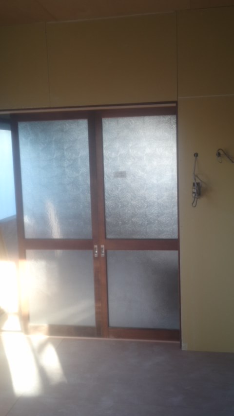 2階の和室とキッチンの境に、もともと1階洗面所についていた引き違いガラス戸を移設しました。